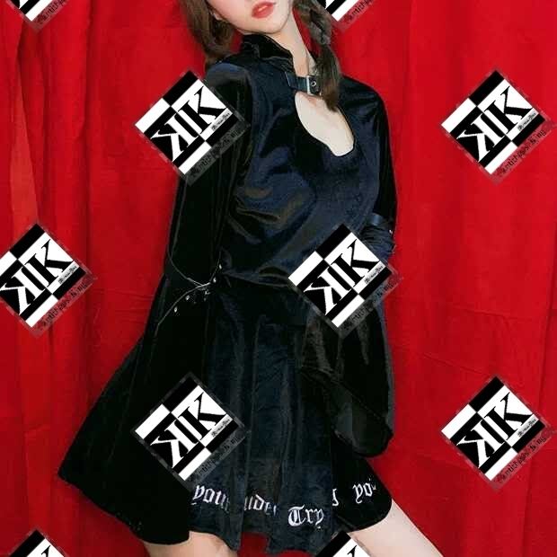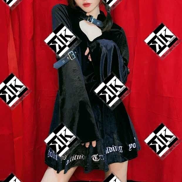 【ATK.LADY】旧A95 ハンドベルト サテン ビショップスリーブ チェストベルト カットアウト レディース 病み 小悪魔 クール 韓国 萌 ダーク 暗黒 クール ダンス 演出 動画
