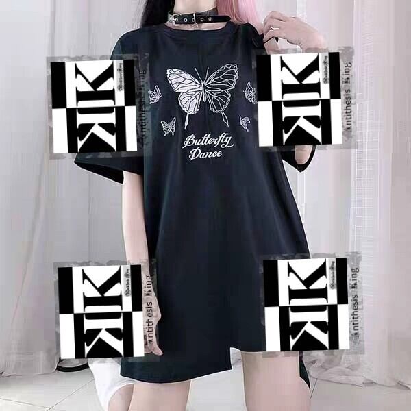 【ATK.LADY】A125 レディース シングルショルダー ロングシャツ 黒 蝶ステッチ オフショルダー ベルト アシメ アシンメトリー 肩ベルト 肩出し セクシー ダンス 演出 動画