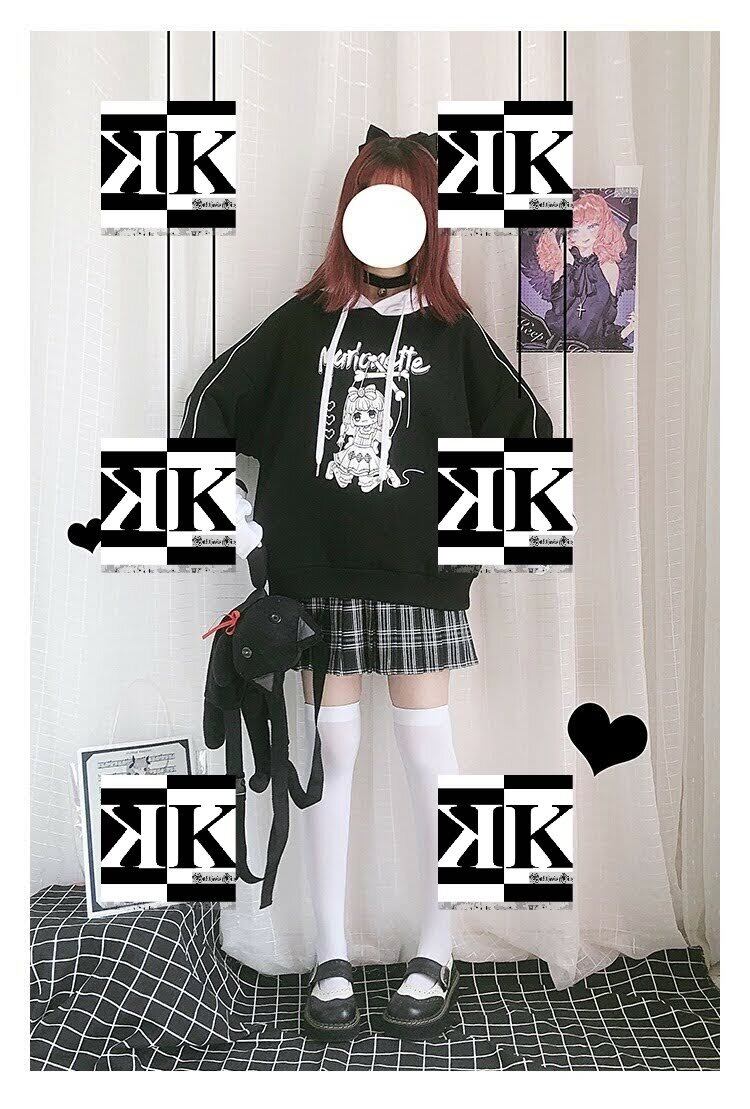 【ATK.LADY】M75 プルオーバーパーカー パッチワークパーカー パッチワーク 原宿系 二次元イラスト プリントパーカー ダブルカラー フーディン 帽子付きパーカー 袖アクセント