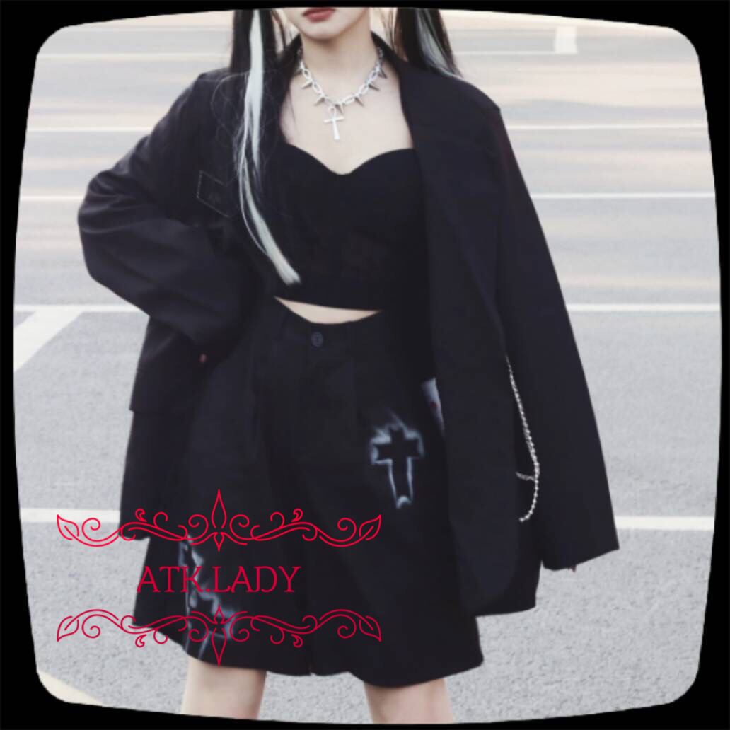 【ATK.LADY】E112 オプン ビック ブラック 黒 BIG コード スーツ かっこかわいい クールビューティ レディース クール クロス 十字架 ロック ヨーロッパ 闇 ダーク ミニスカート | 〜 Antithesis King 〜 レディースファション部門 (ATK.LADY)