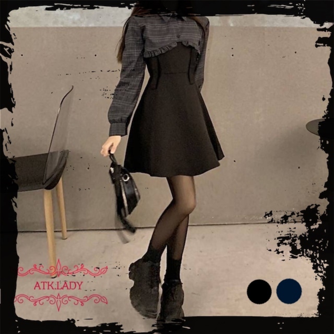 【ATK.LADY】N124 チェック柄 量産 オシャレ ボレロ ワンピース 膝丈 乙女 通勤 通学 ミニ スカート | 〜 Antithesis King 〜 レディースファション部門 (ATK.LADY)