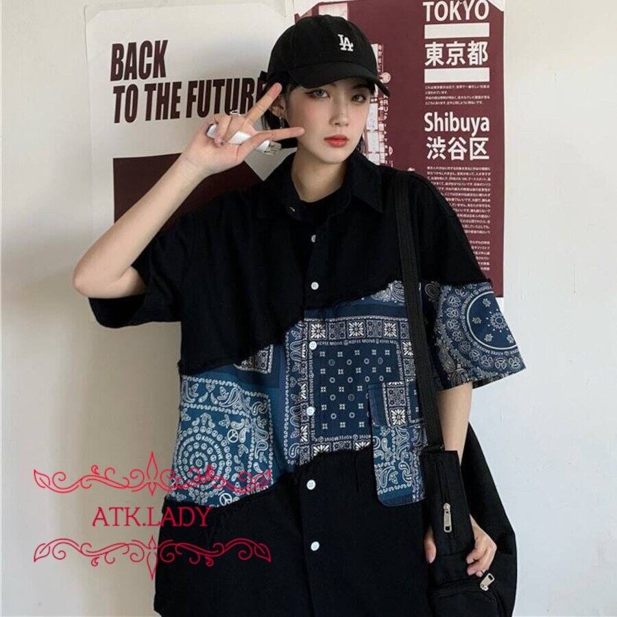 【ATK.LADY】E71 アシメ アシンメトリー レオパード 豹紋 ワイシャツ ワイド ルーズ ユニセックス モード系 レディース シャツ 民族風 ストリート 半袖 ロック 中性 | 〜 Antithesis King 〜 レディースファション部門 (ATK.LADY)