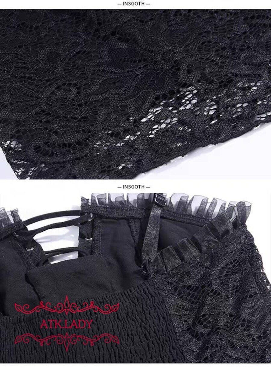 【ATK.LADY】A35 乳袋 レース裾 バストオプン レースアップ キャミソールワンピース タックフレア 肩出し オフショルダー 肩紐 レディース ワンピース 黒少女 レース 欧米 ゴスロリ ロリータ 演出 | 〜 Antithesis King 〜 レディースファション部門 (ATK.LADY)