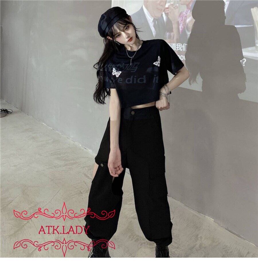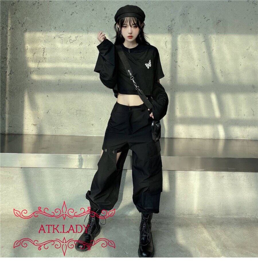 【ATK.LADY】B61 グリップトップ カットアウト 絞り裾 ショート丈 短め へそ出し モード系 ストリート系 レディース 蝶 ロック 韓国 ビジュアル クール 若者 デザイン シャツ パンツ ダンス 演出 ストリート系 | 〜 Antithesis King 〜 レディースファション部門 (ATK.LADY)