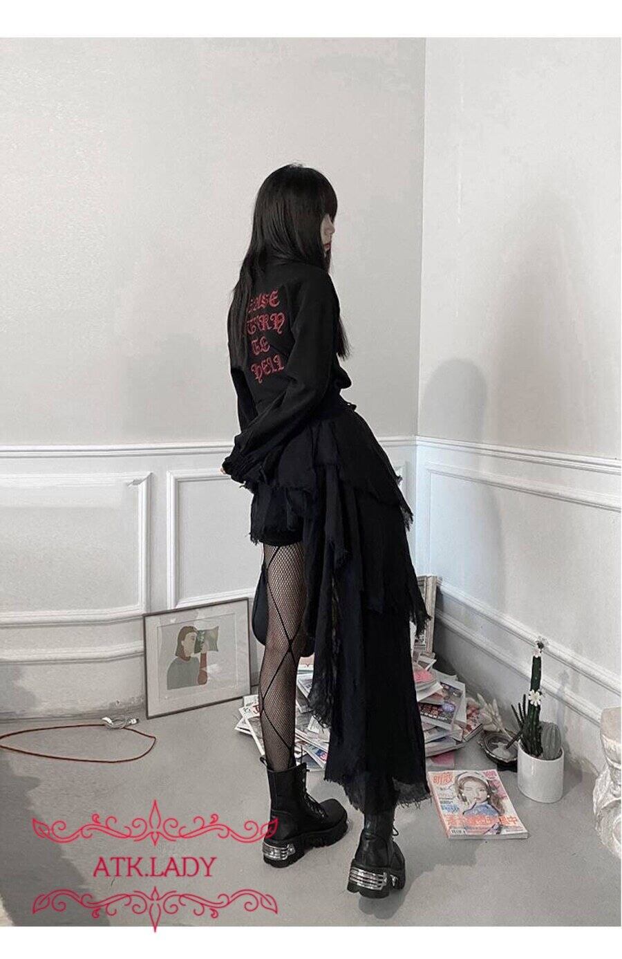 【ATK.LADY】C15 アシメ ハーフレングス 変則裾 ウェーブヘム ティアード ゴージャス ブラック 黒 アシンメトリー 麻生地 シースルー ゴシック クールビューティ 大人かわいい ヨーロッパゴシック ゴシックスカート 黒スカート | 〜 Antithesis King 〜 レディースファション部門 (ATK.LADY)