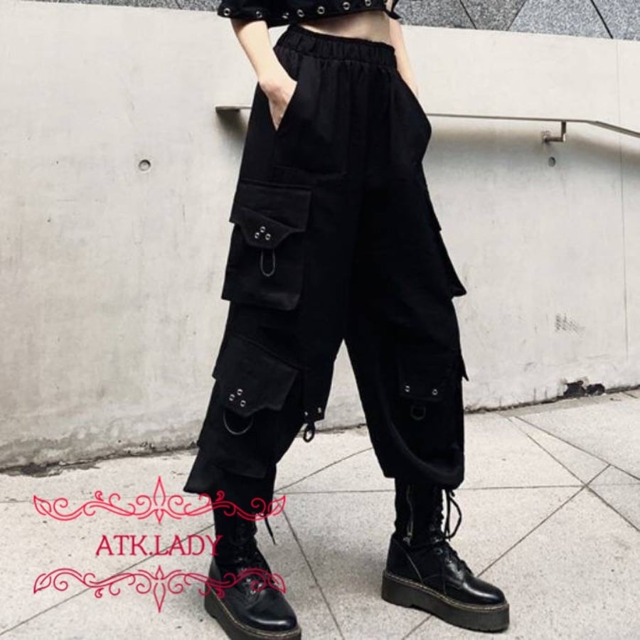 【ATK.LADY】D12 ポケット ティアード 多層 モード系 ストリート系 かっこかわいい かっこいい ロック ダンス 軍ミリタリー ブラック 黒 レディース メンズ ズボン 黒 ダンス ヒップホップ クール かっこいい ストリート系 原宿系 | 〜 Antithesis King 〜 レディースファション部門 (ATK.LADY)
