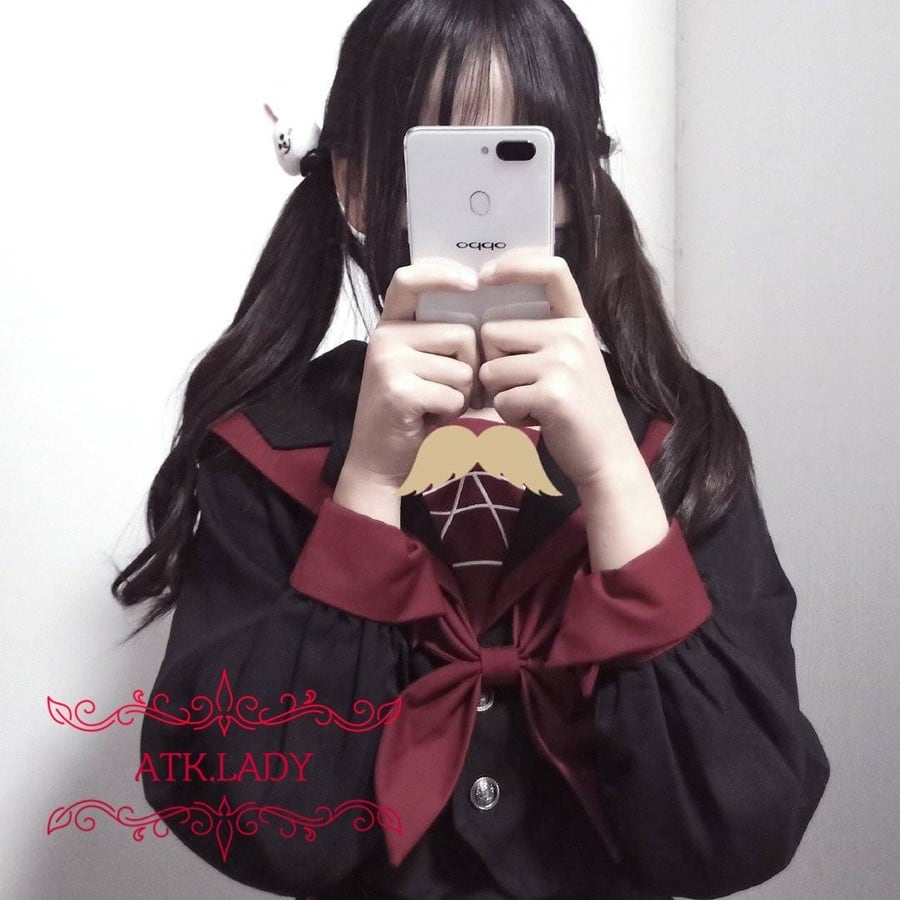 【ATK.LADY】N75 魔眼 ショート丈 短め レッドブラック 赤黒 グリップトップ セットアップ 2ピース レースアップ チェストリボン セーラーカラー ビックカラー リボン 個性 闇 病み可愛い クール レディース 病み セーラー服 赤 黒 | 〜 Antithesis King 〜 レディースファション部門 (ATK.LADY)
