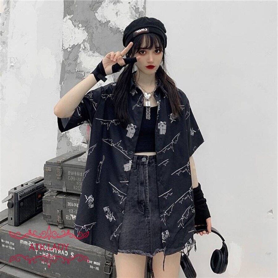 【ATK.LADY】E72 絞り染め モード系 ウェーブライン ユニセックス ビック big サイズ レディース シャツ 半袖 黒 英文字 クール ロック かっこかわいい ロック かっこいい ブラック 黒 ダンス | 〜 Antithesis King 〜 レディースファション部門 (ATK.LADY)