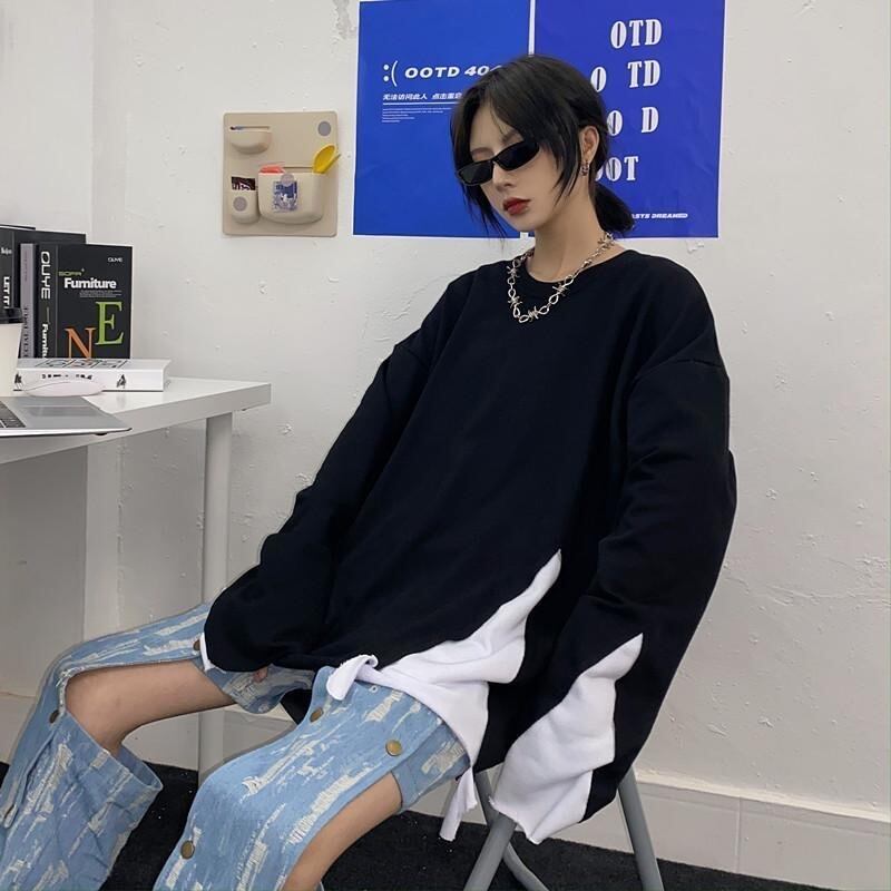 【ATK.LADY】D112 オシャレ ユニセックス モード系 ハイスリット ストレート 清潔 ヒップホップ ダンス レディース シャツ 長袖 白 ホワイト 黒 ブラック 中性 | 〜 Antithesis King 〜 レディースファション部門 (ATK.LADY)