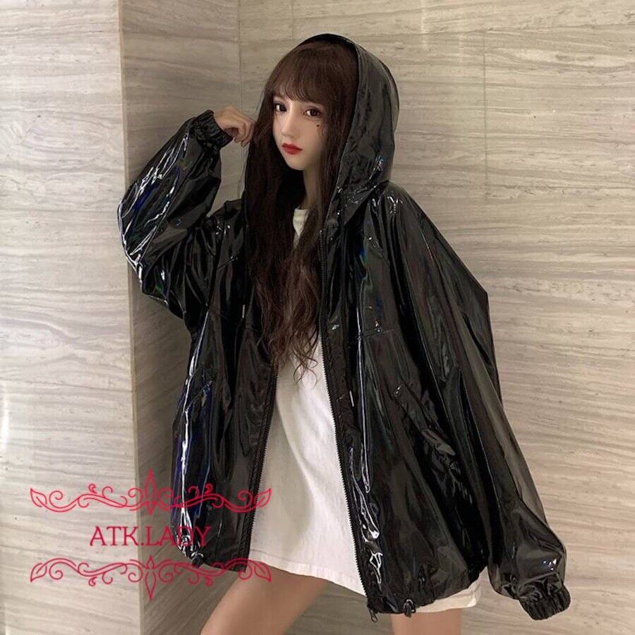 【ATK.LADY】D104 ビック big ゆとり ルーズ モード系 アウター パーカー ナイロン 光 反射 派手 クール かっこかわいい フート パーカー 黒 ブラック かっこかわいい クールビューティ 長袖 レディース | 〜 Antithesis King 〜 レディースファション部門 (ATK.LADY)