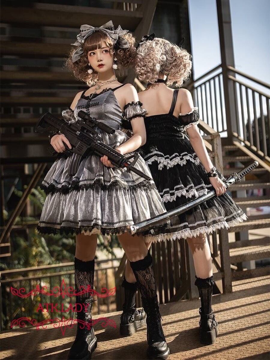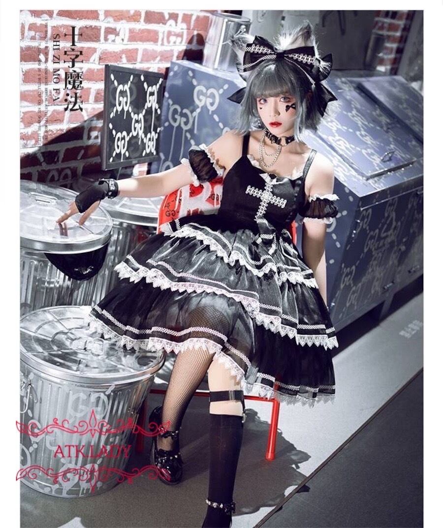 【ATK.LADY】N56 Holy cross【聖十字アイドル】洋風 ドレス ゴスロリ ゴシック ヨーロッパ 欧米風 ビンテージ クラシック 演出 アイドル グレー 白 黒豪華 宮廷風 ワンピース ドレス スカート | 〜 Antithesis King 〜 レディースファション部門 (ATK.LADY)
