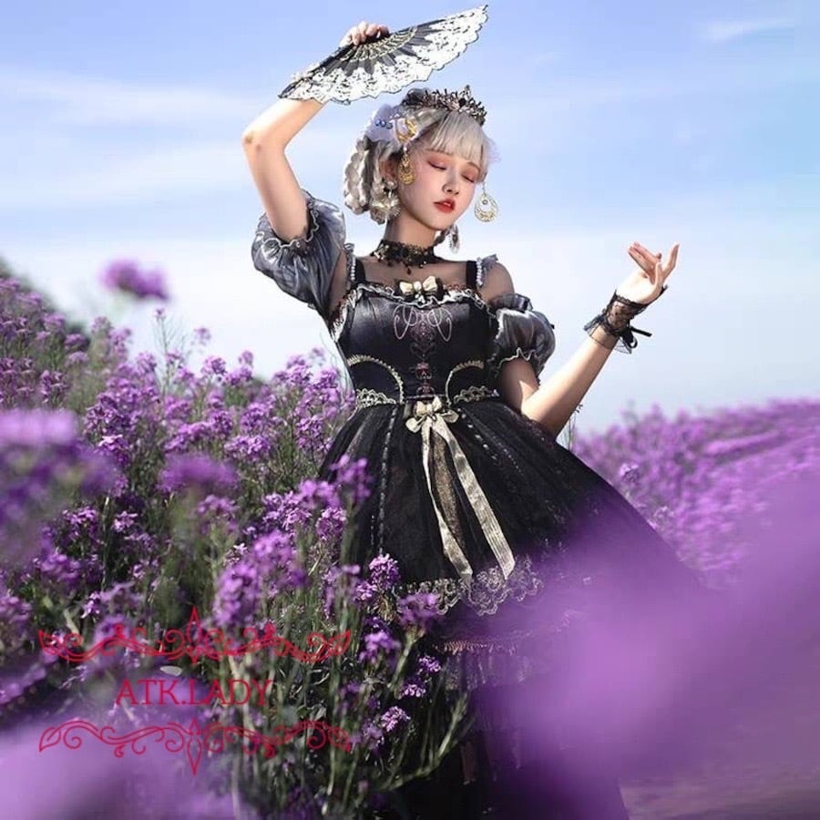【ATK.LADY】M76 Dark Rose【紫黒薔薇】JSK 分離 袖 洋風 ドレス ゴスロリ トレロ ビンテージ ゴージャス 豪華 高貴 ゴシック ヨーロッパ 欧米風 クラシック 演出 アイドル ブラック 黒 豪華 宮廷風 ワンピース ドレス スカート | 〜 Antithesis King 〜 レディースファション部門 (ATK.LADY)