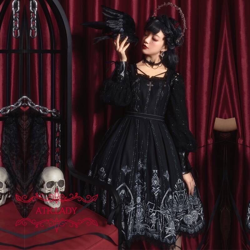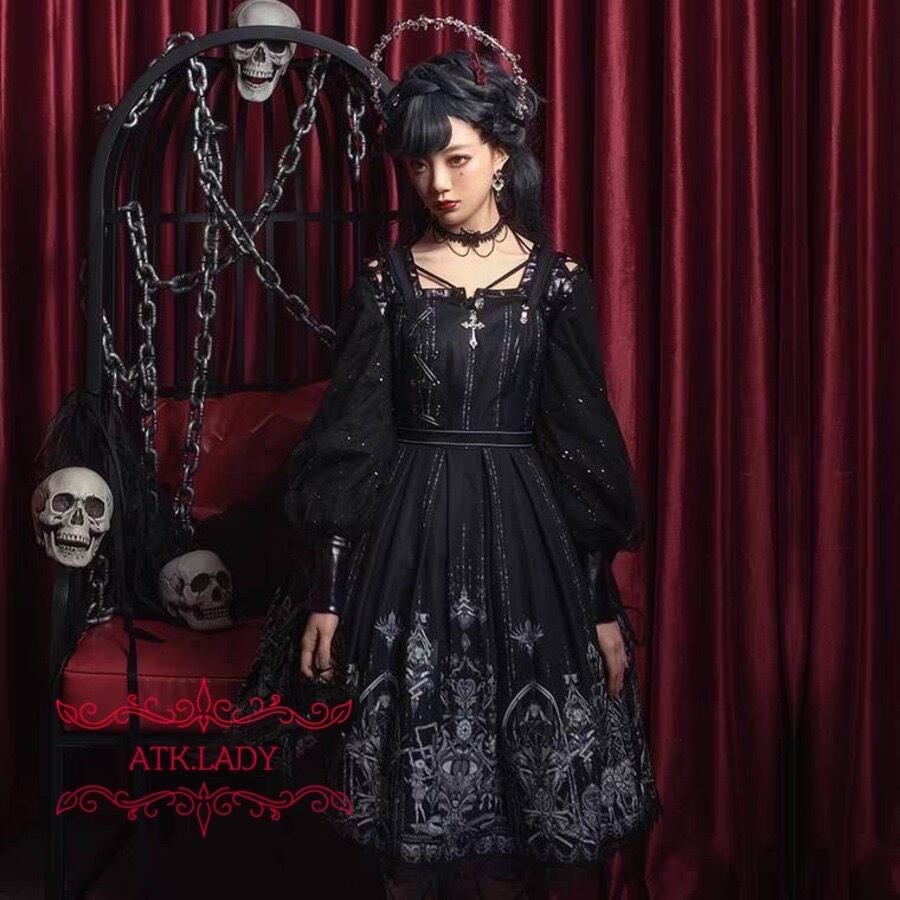 【ATK.LADY】K56 Skull and sin【髑髏と罪】JSK キャミソールワンピース 悪魔柄 レースアップ ステッチ 闇 ゴシック ゴスロリ ドレス ワンピース ダーク 黒 ブラック 豪華 高品質 | 〜 Antithesis King 〜 レディースファション部門 (ATK.LADY)