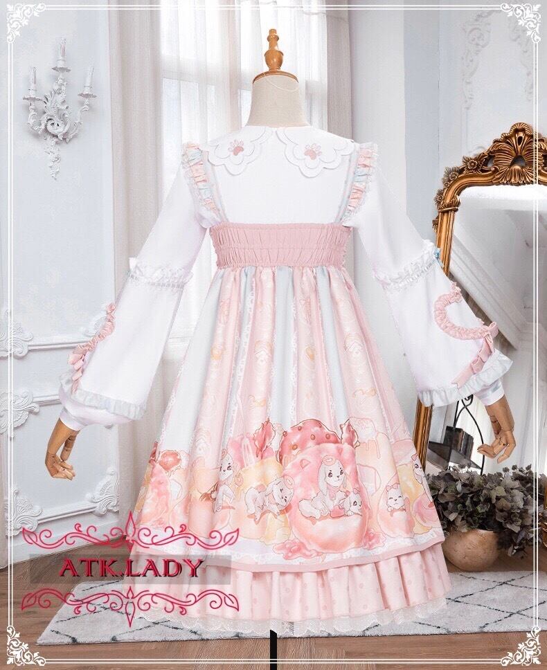 【ATK.LADY】K96 Sweet princess【甘々姫】うさぎ ウサギ 兎 肉球 リボン型腰封 ビックカラー ラペル レースライン レースベース レース裾 裾甘ロリ 姫ロリ ワタロリ ロリータ フラワー 大 ドレス レース ピンク ドレス風 スカート ワンピース ゆみかわ 広め 姫 乙女 白 ホワイト ピンク リボン | 〜 Antithesis King 〜 レディースファション部門 (ATK.LADY)
