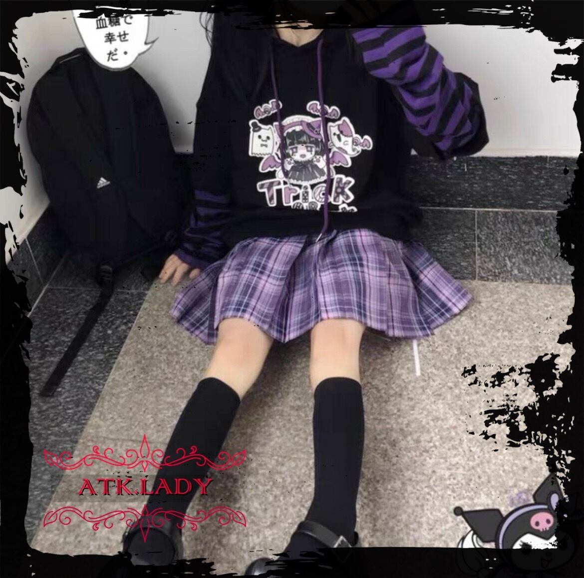 【ATK.LADY】新K164 レディース パーカー パープル 紫 ブラック 黒 プルオーバー フード フーディン 重ね着 ロング 2D ゆとり | 〜 Antithesis King 〜 レディースファション部門 (ATK.LADY)
