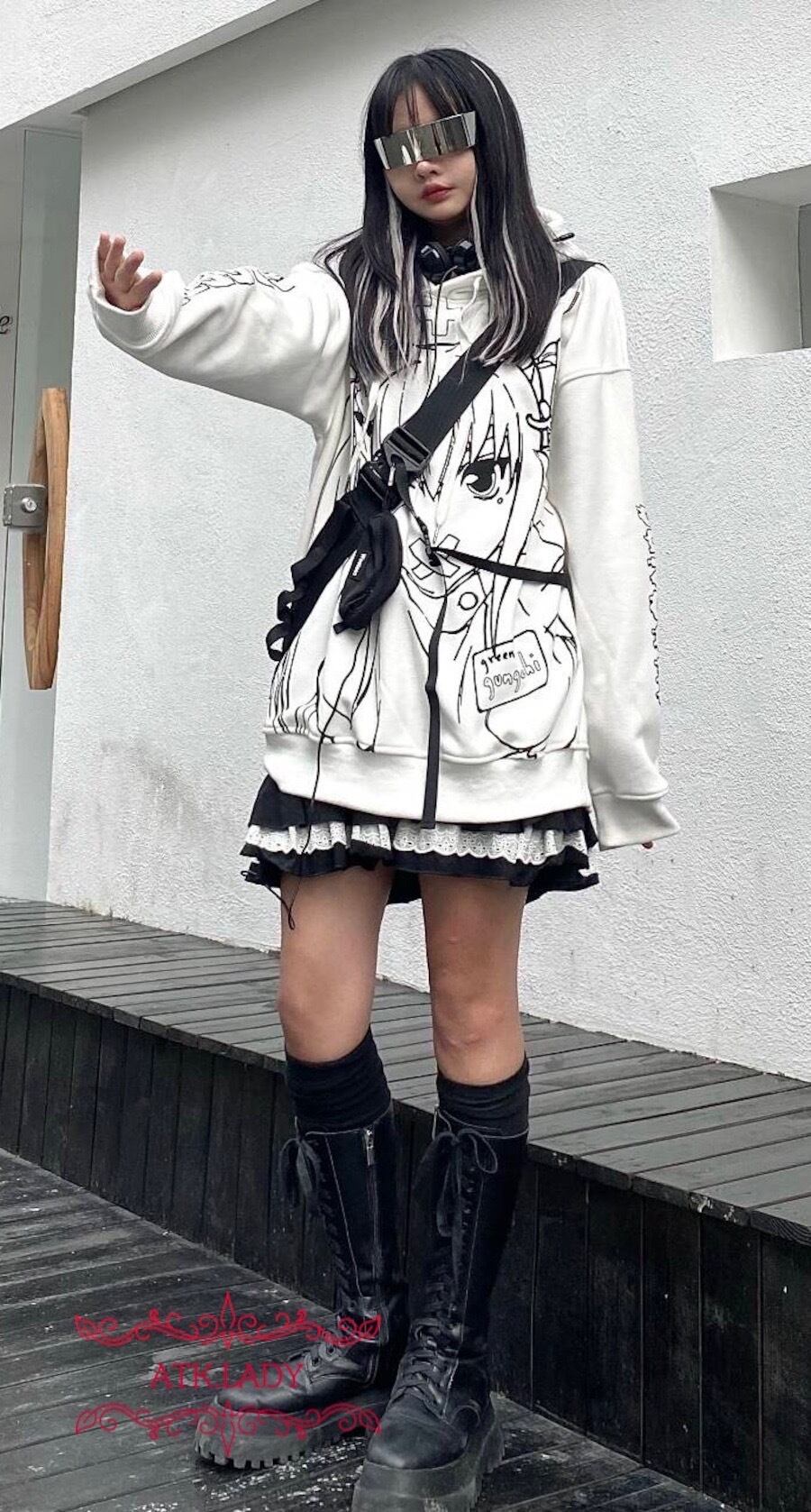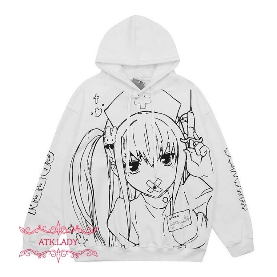 【ATK.LADY】L125 レディース プリント フード フーディン ナース女の子 2D パーカ 原宿 韓国 白 黒 ホワイト ブラック学生 若者 かわいい ビックサイズ big 顔 ロリータ ゆったり 10代 20代 バイカラー ダンス 個性 | 〜 Antithesis King 〜 レディースファション部門 (ATK.LADY)