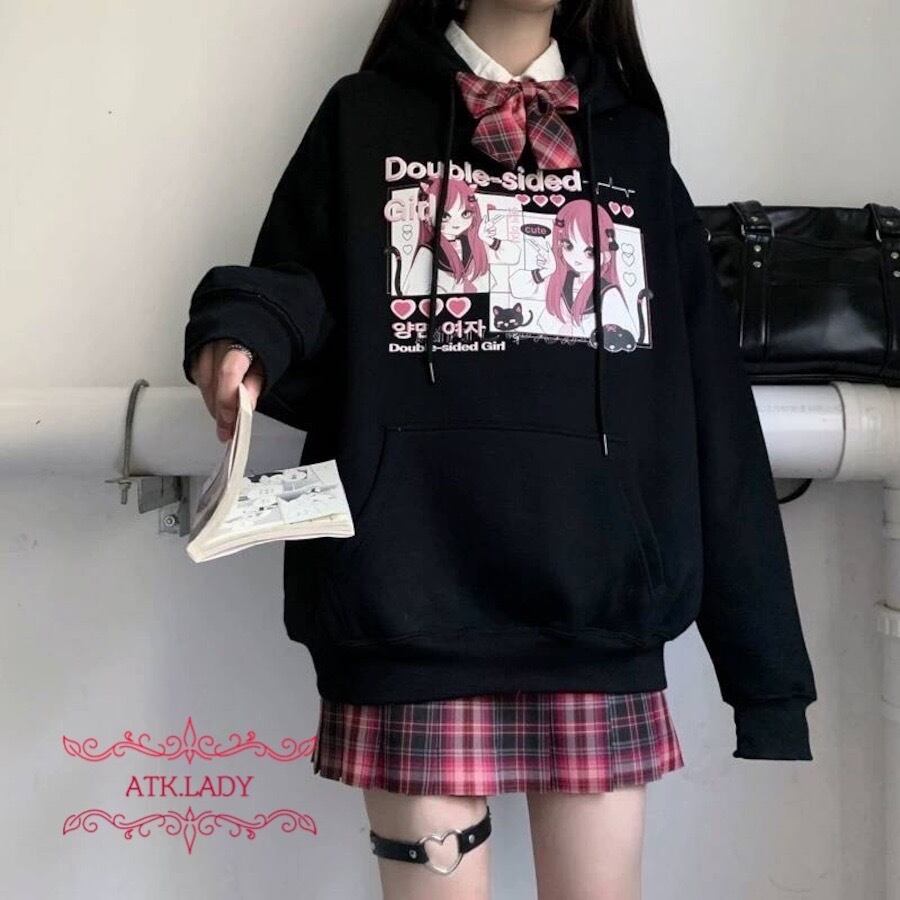 【ATK.LADY】M43 レディース ロリータ 黒少女 やみかわ 病み可愛い キュート 学生 幼い ダンス 2D女の子プリント リボン結び かっこかわいい プルオーバー 長袖 | 〜 Antithesis King 〜 レディースファション部門 (ATK.LADY)