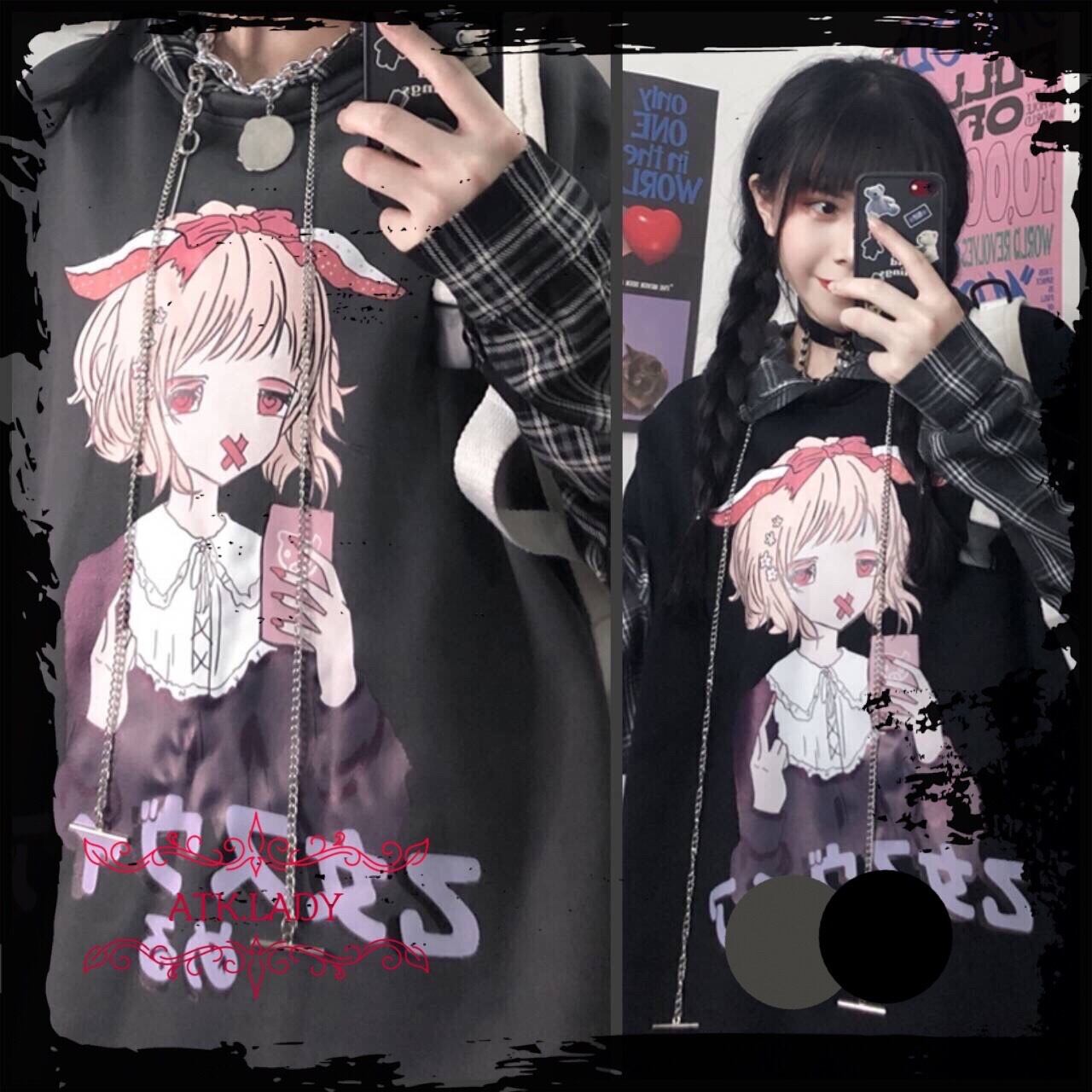 【ATK.LADY】N111 量産 女の子 プリント 病み可愛い プリント 女の子 幼風 乙女 チェック柄 重ね着 シャツ 長袖 レディース | 〜 Antithesis King 〜 レディースファション部門 (ATK.LADY)