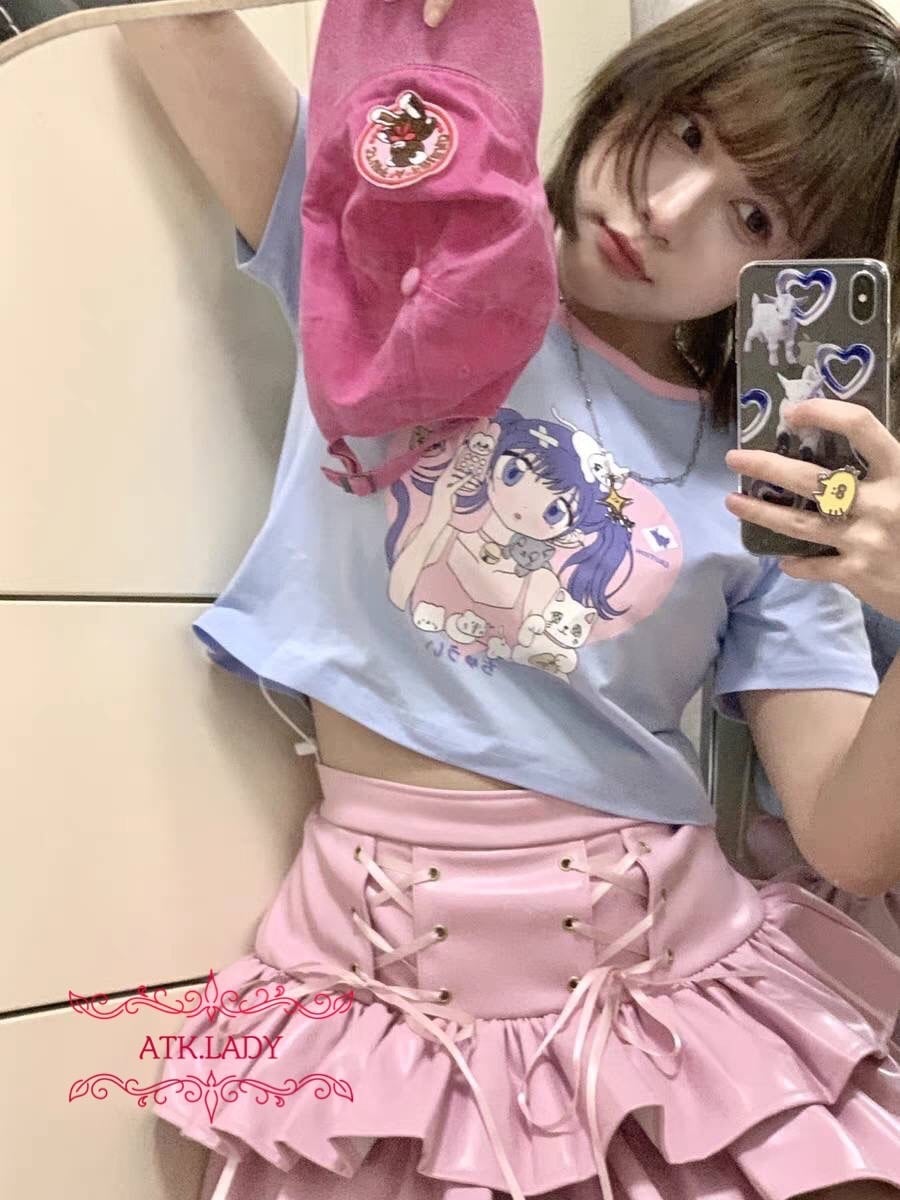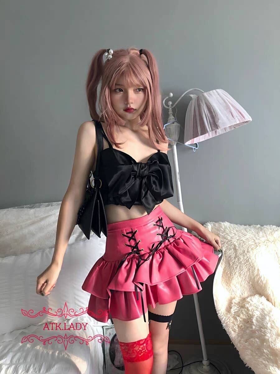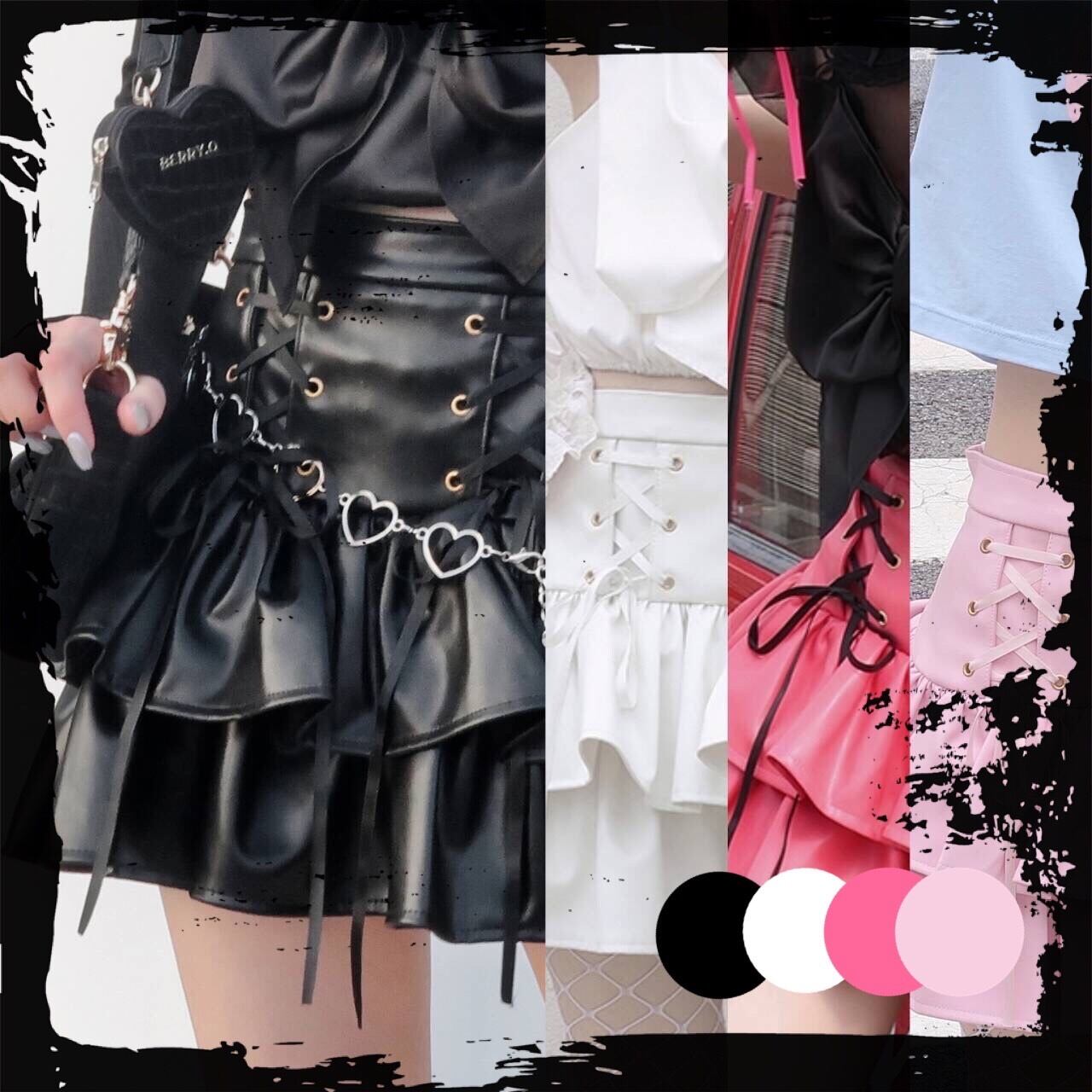【ATK.LADY】E45 レーザー 2層 多層 ティアード ウェーブヘム 革製 ミニスカート セクシー 黒 ブラック ピンク 白 ホワイト 赤 レッド クールビューティ 病みかわいい | 〜 Antithesis King 〜 レディースファション部門 (ATK.LADY)
