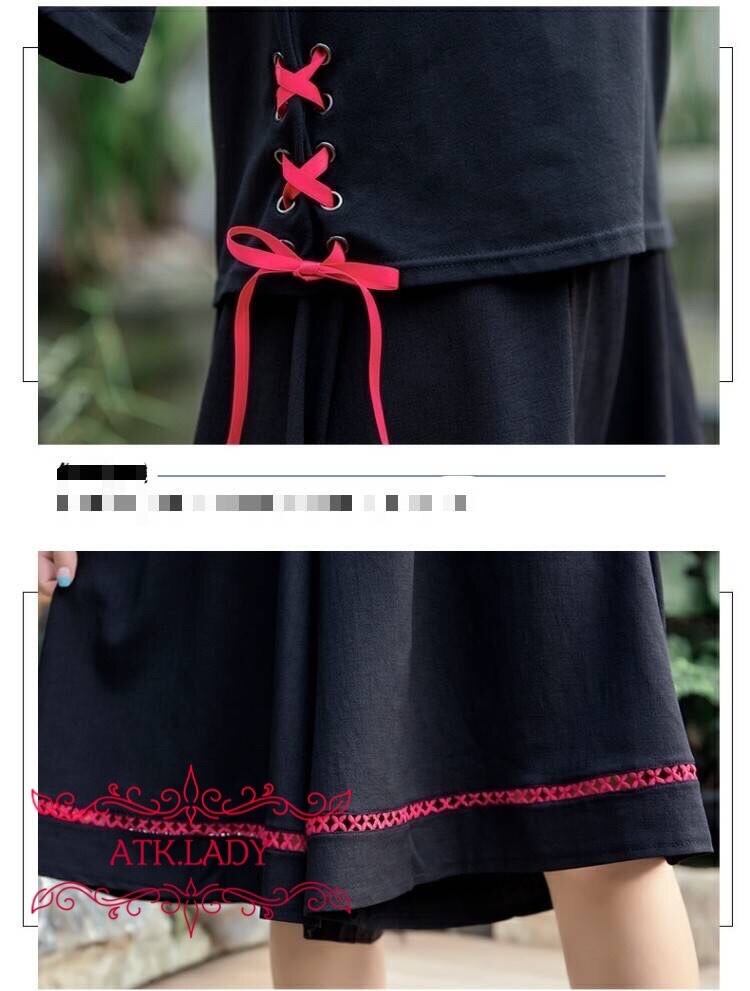 【ATK.LADY】N65 乙女 レースアップ リボン 帯 幼風 リゾート 祭り 狐 ステッチ 黒 半袖 華ロリー 夢かわいい ロリータ 中華風 レディース | 〜 Antithesis King 〜 レディースファション部門 (ATK.LADY)