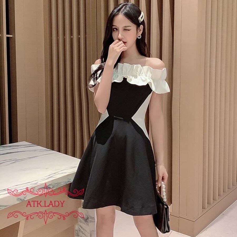 【ATK.LADY】N53 フラワー キャミソールワンピース バイカラー ダブルカラー 白 ホワイト 黒 ブラック モノクロ モノトン 肩出し オフショルダー チェストフリル aライン お嬢様 宴会 パーティー デート 気質 姫 上品 高貴 乙女 フリル 花びら レディース ワンピース | 〜 Antithesis King 〜 レディースファション部門 (ATK.LADY)