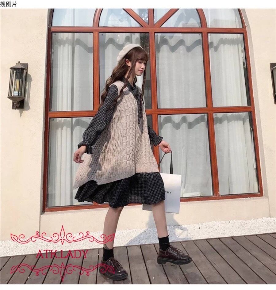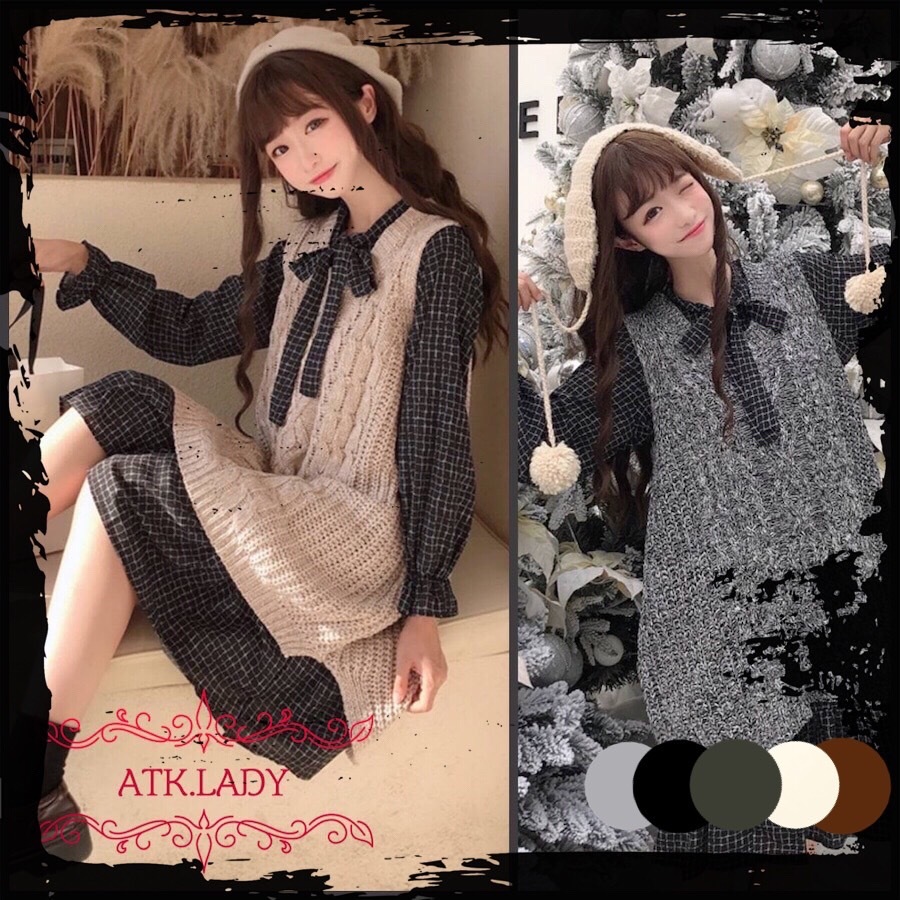 【ATK.LADY】N72 グレー 灰色 Aライン ギンガムチェック ミニブランケット ロング カーキー 帯リボン ベストセーター ベストニット ベスト セーター ニット ロング 春 秋 乙女 リボン ロリータ ワンピース 量産 可愛い セーター ブラウス レディース | 〜 Antithesis King 〜 レディースファション部門 (ATK.LADY)