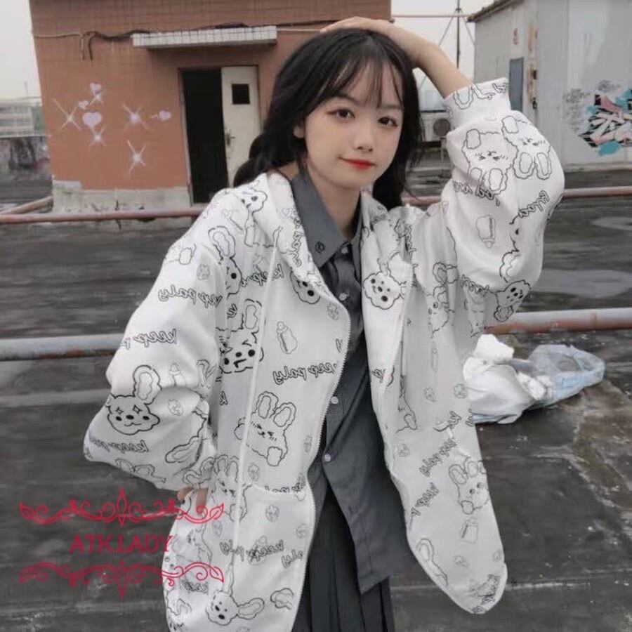 【ATK.LADY】M83 ワイド ビック big アウター 幼め 乙女 ホワイト ジッパー オプン ゆるふわ パーカー オーバーサイズ 白 ホワイト 夢かわいい ウサギ系 女子 兎 うさぎ ウサギ YU | 〜 Antithesis King 〜 レディースファション部門 (ATK.LADY)