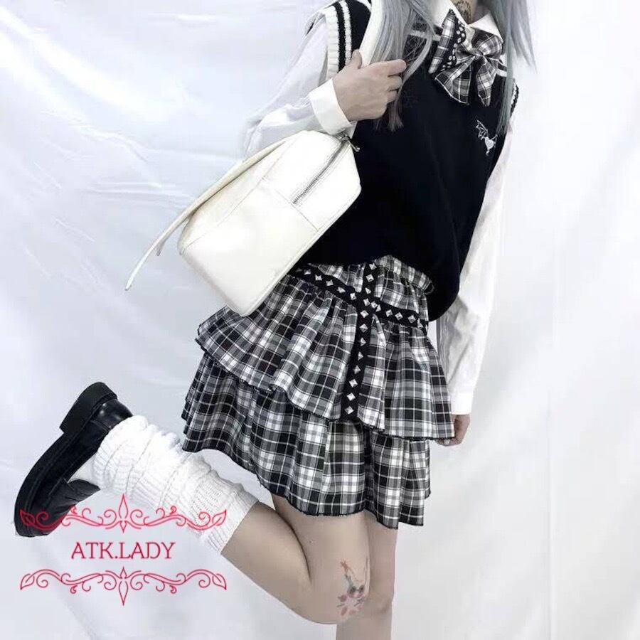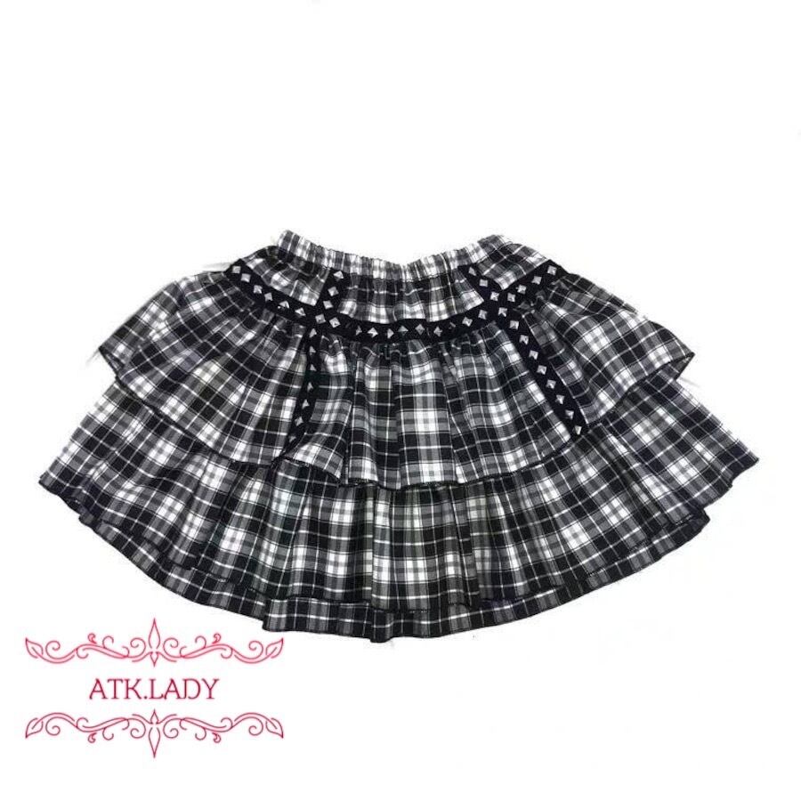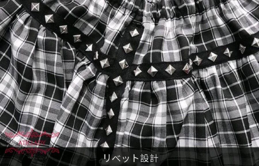 【ATK.LADY】C41 タータンチェック スタッズ フリルスカート クロス 十字 ティアード 2層 多層 ブレザースカート 格子柄 チェック柄 モノクロ ゴスロリ スタッヅ加工 ミニスカート パンクロリータ 紹介動画あり | 〜 Antithesis King 〜 レディースファション部門 (ATK.LADY)