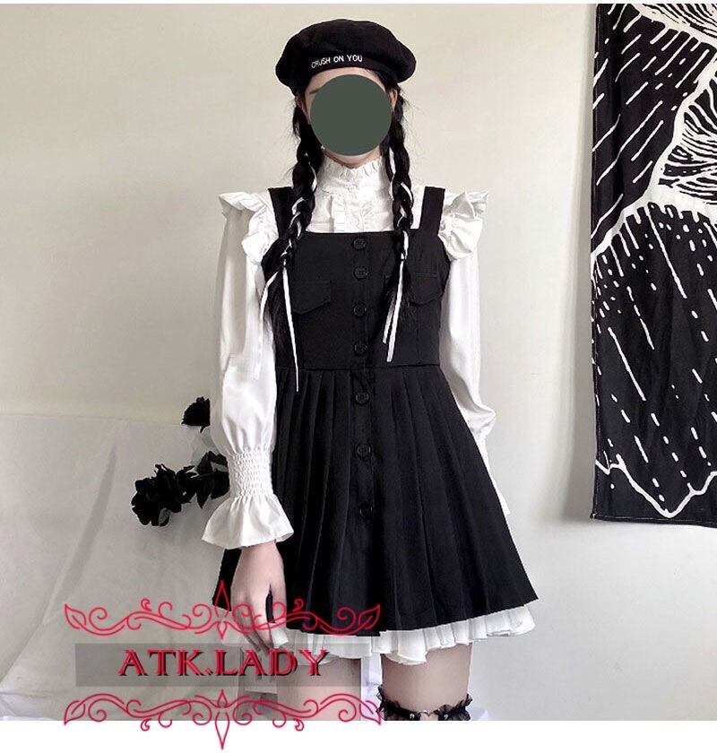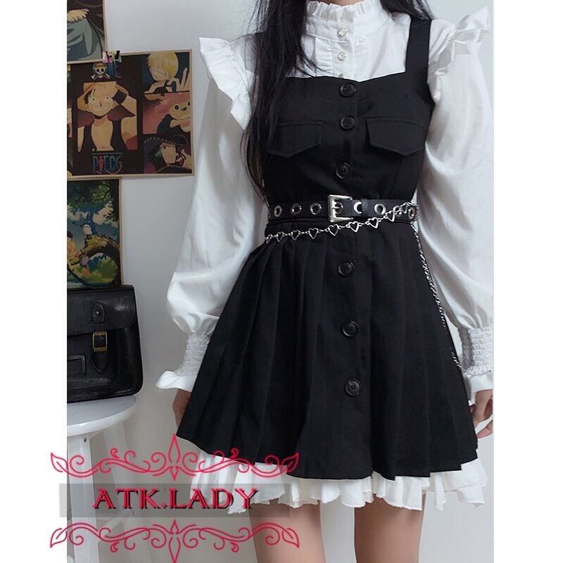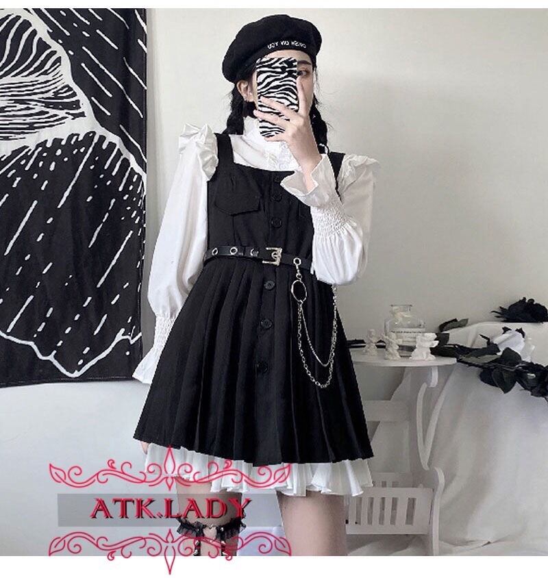 【ATK.LADY】O84 ウェーブヘム 胸ポケット 黒 ブラック 白 ホワイト ボタンワンピース キャミソールワンピース ランタンスリーブ シフォン 透け Aライン レース 白 乙女 シャツ 長袖 夢かわいい クリーム 透明 透ける セクシー ダーク フラワー 袖 | 〜 Antithesis King 〜 レディースファション部門 (ATK.LADY)
